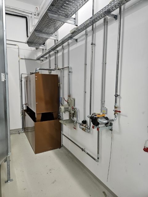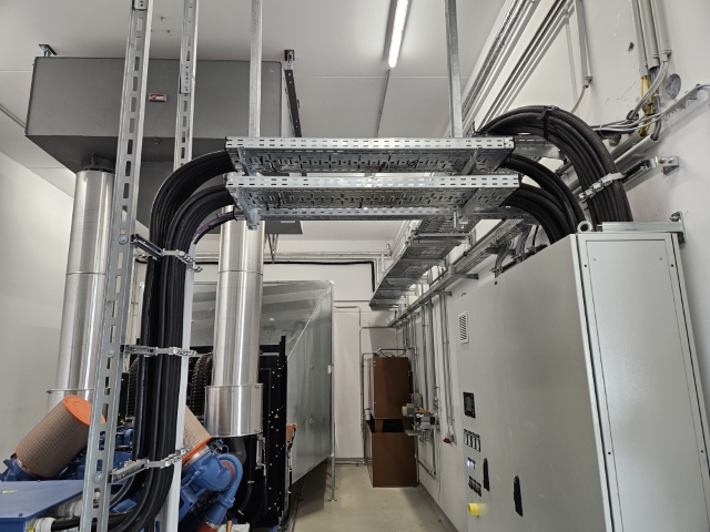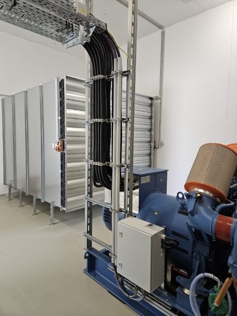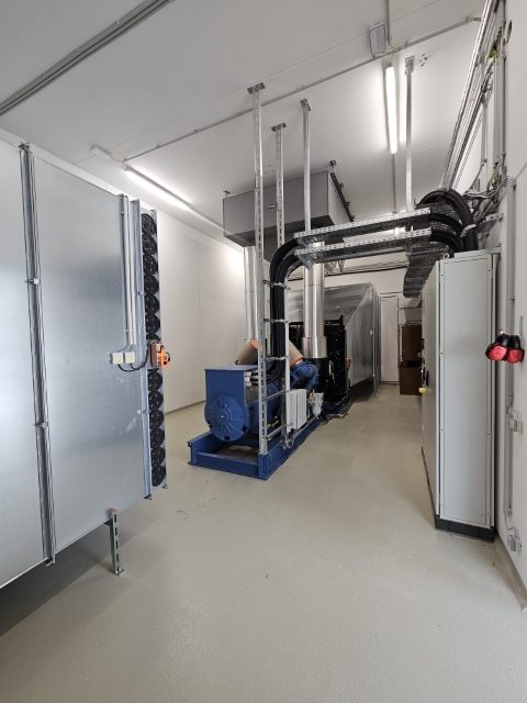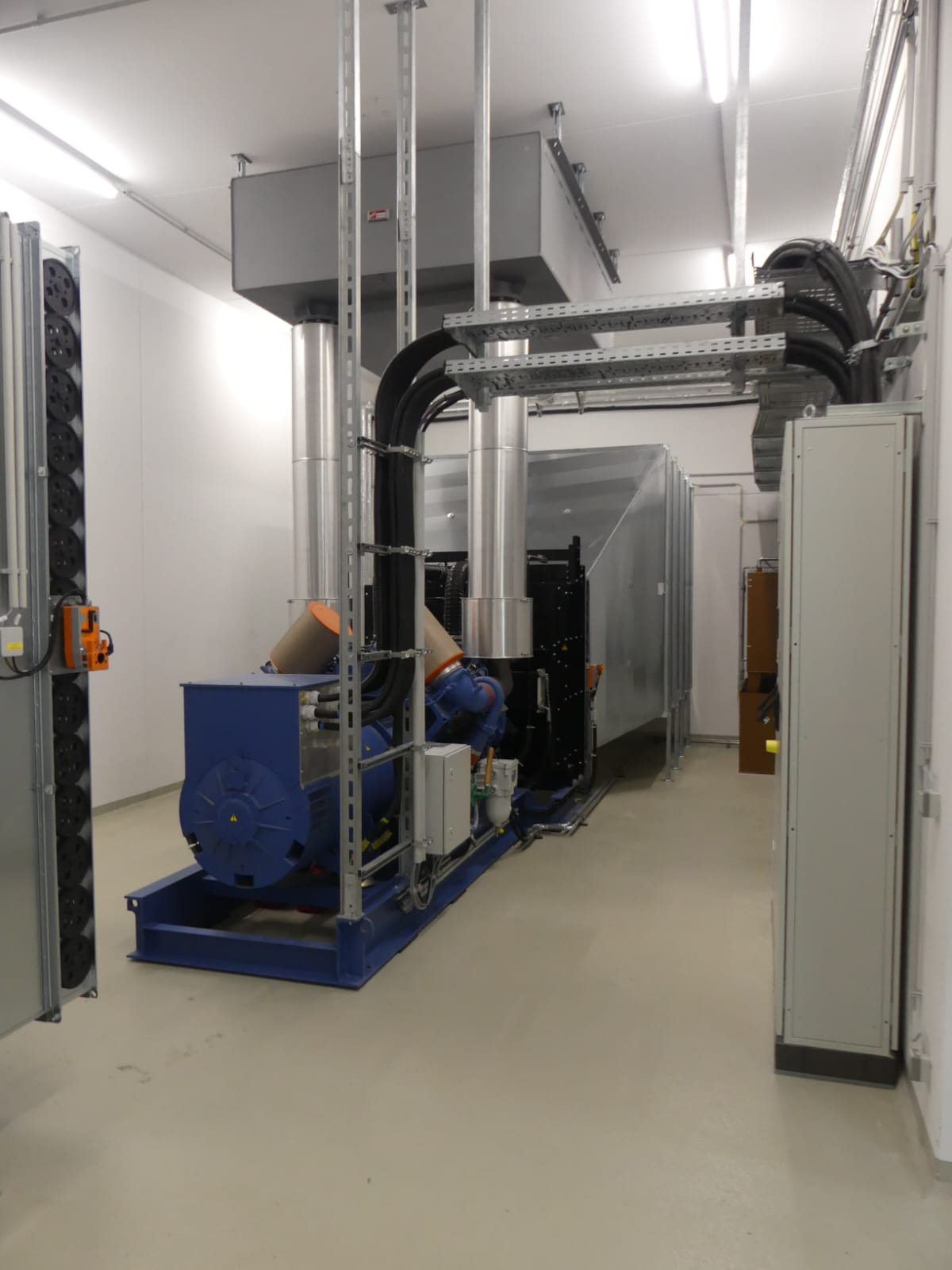 Für die Raab-Kaserne in Mautern errichteten wir eine Netzersatzanlage mit 800 kVA Leistung. Die Anlage wurde so ausgeführt, dass die Abgase über das Dach abgeführt werden. Zuluft und Abluft werden über Kanalschalldämpfer geleitet, um einen geräuscharmen Betrieb sicherzustellen.