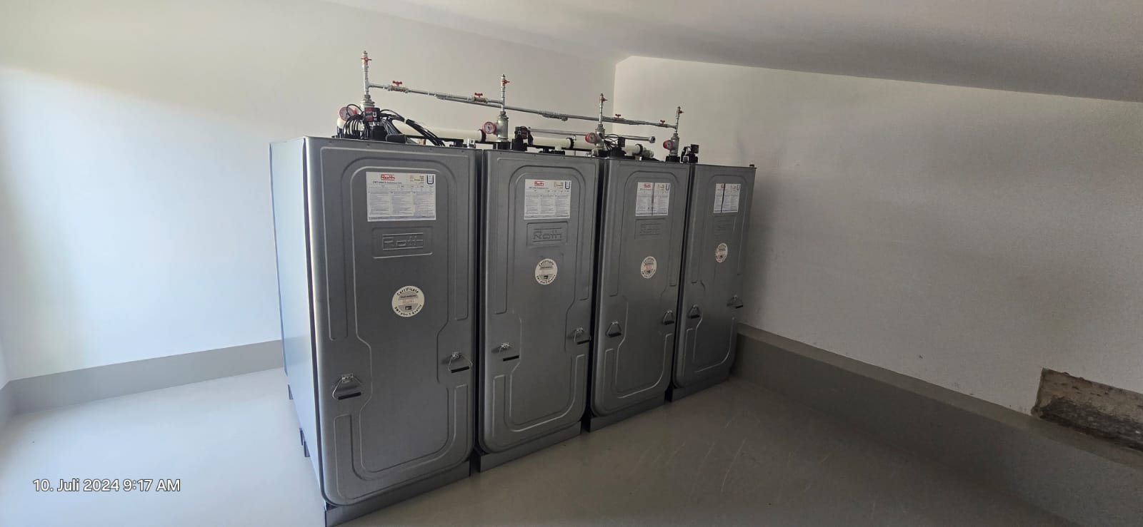 Zur Kraftstoffversorgung wurde ein 6.000-Liter-Dieseltank installiert, der eine zuverlässige Notstromversorgung über längere Betriebszeiten gewährleistet. Die Umsetzung umfasste Planung, Montage und Inbetriebnahme der Anlage, wobei besonderer Wert auf Betriebssicherheit, einfache Wartung und eine robuste, langlebige Ausführung gelegt wurde.