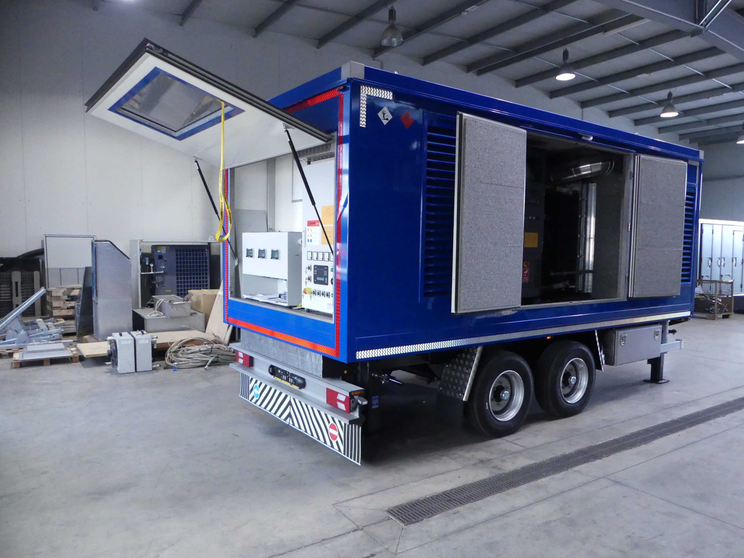 Zum Anhänger gehören auch Werkzeugkisten, Powerlockanschlüsse und ein schallgedämmtes Gehäuse